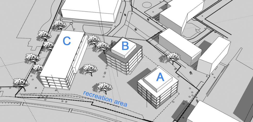 This residential complex is a project created to participate in the Architectural Competition. The competition encourages participants to re-think the abandoned green site near the river Lys in Kortrijk city, Belgium. This design proposal assumes the renovation of the embankment pedestrian area and creation of 3 residential buildings with offices and restaurants on the ground floor.
