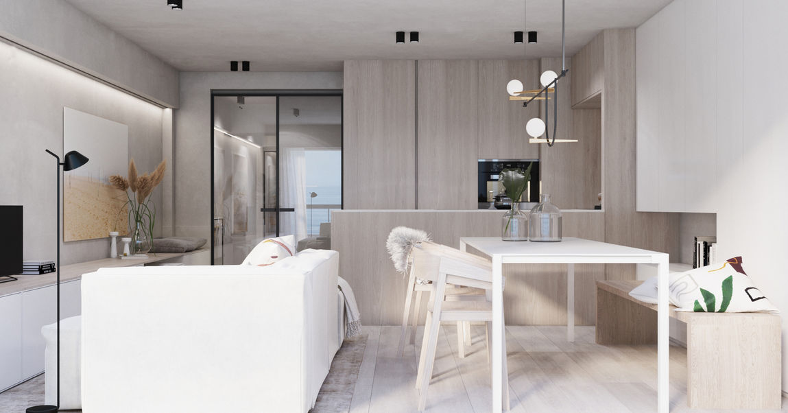 The interior design project's goal was to design an open space consisted of kitchen, dining, living and small lounge zone.